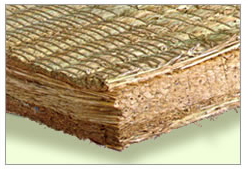 稲わらを素材にした畳床は、単純に積み上げると40cm位にもなる量の稲わらを5cmの厚さに圧縮して縫い上げていますが、単に重ねるだけでなく、縦横に配して5~6層に仕上げていきます。昔は稲わらの層を”手縫い”で行っていましたが、現在はすべて機械逢着で製造されていて、一枚に使われる稲わらの総量も昔より多く、しっかりした畳床がつくられ品質のばらつきが少なくなりました。